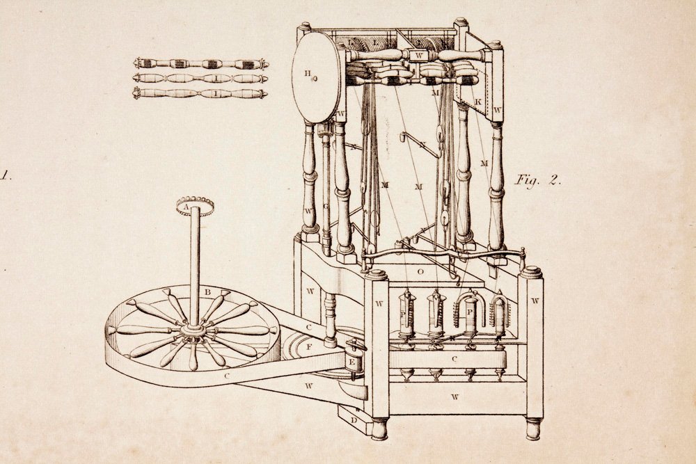 James Hargreaves’ Spinning Jenny allowed multiple spindles to be operated simultaneously.